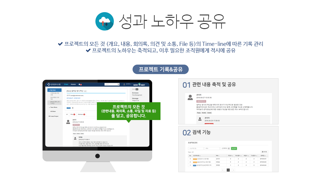 프로젝트(업무)의 기록과 관리를 위한 최적의 시스템을 제공하고,