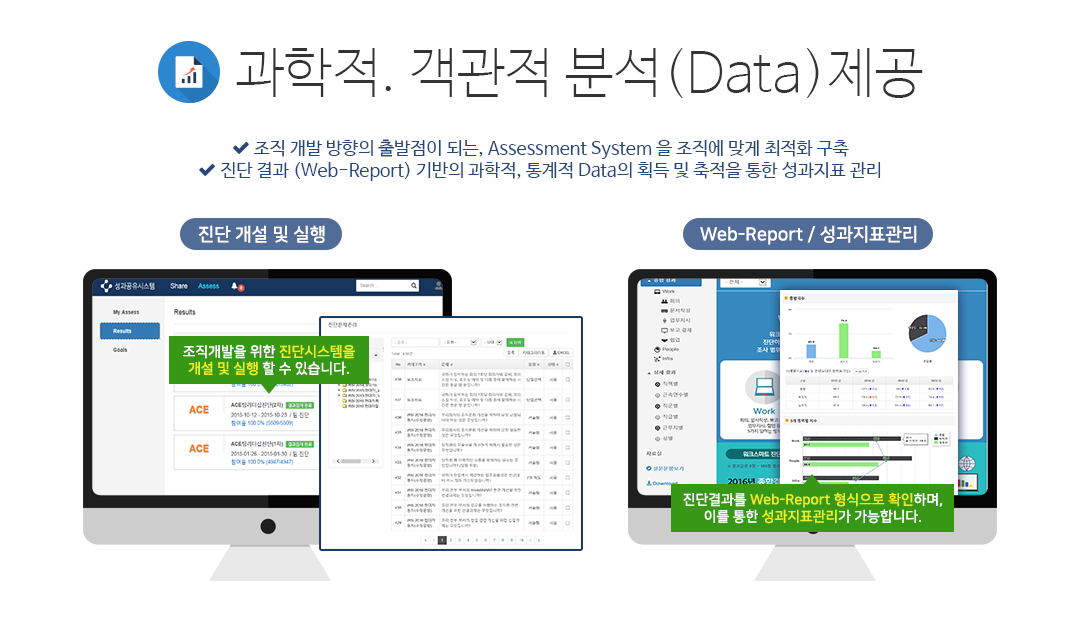 조직 맞춤형으로 활용할 수 있도록 진단시스템을 제공합니다.