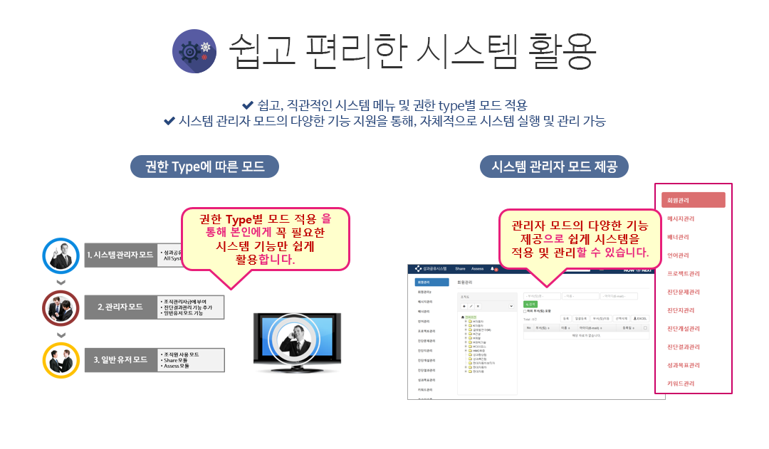 시스템 사용의 편리성, 개방성으로